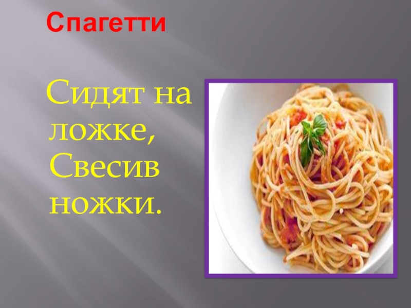 Спагетти   Сидят на ложке, Свесив ножки.