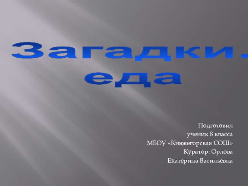 Загадки.  едаПодготовил ученик 8 класса МБОУ «Княжегорская СОШ»Куратор: Орлова Екатерина Васильевна