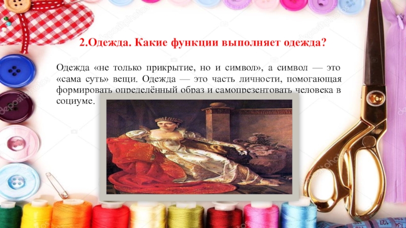 Слайд 42.Одежда. Какие функции выполняет одежда?