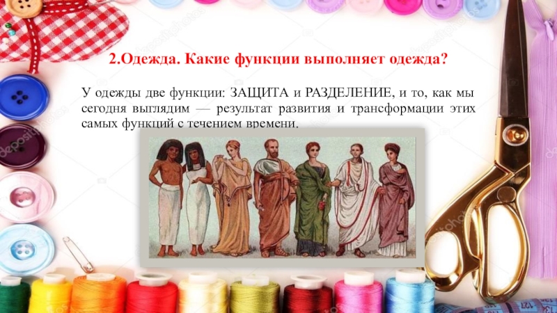 Слайд 62.Одежда. Какие функции выполняет одежда?