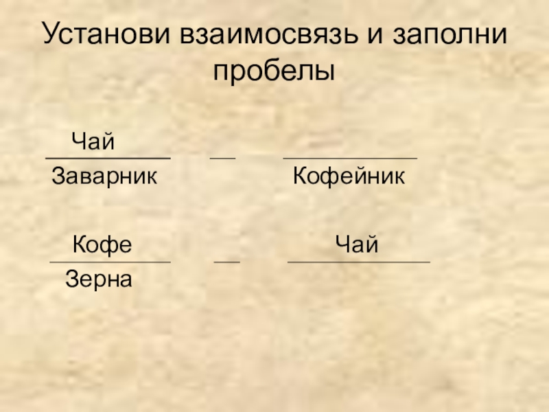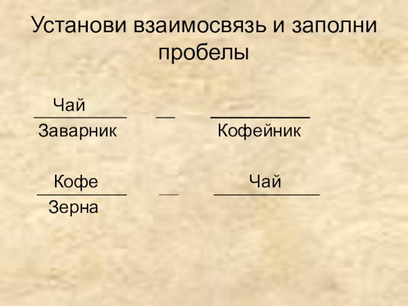 Слайд 7Установи взаимосвязь и заполни пробелы