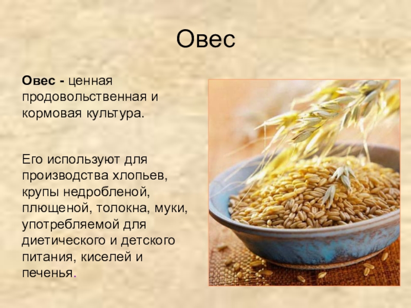 супов, каши и других кулинарных изделий; является ценным кормом для домашней птицы. Из обмолоченных стеблей делают веники.