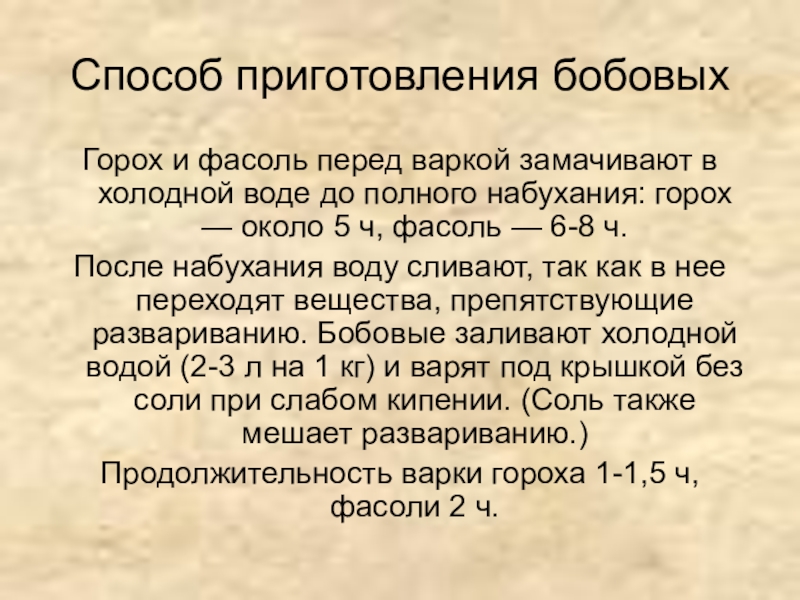 до полного набухания: горох — около 5 ч, фасоль — 6-8 ч.