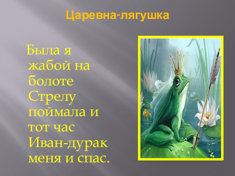 Была я жабой на болоте Стрелу поймала и тот час Иван-дурак