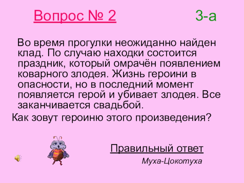 Во время прогулки неожиданно найден клад. По случаю находки состоится праздник, который омрачён появлением коварного злодея. Жизнь героини в опасности, но в последний момент появляется герой и убивает злодея. Все заканчивается свадьбой.