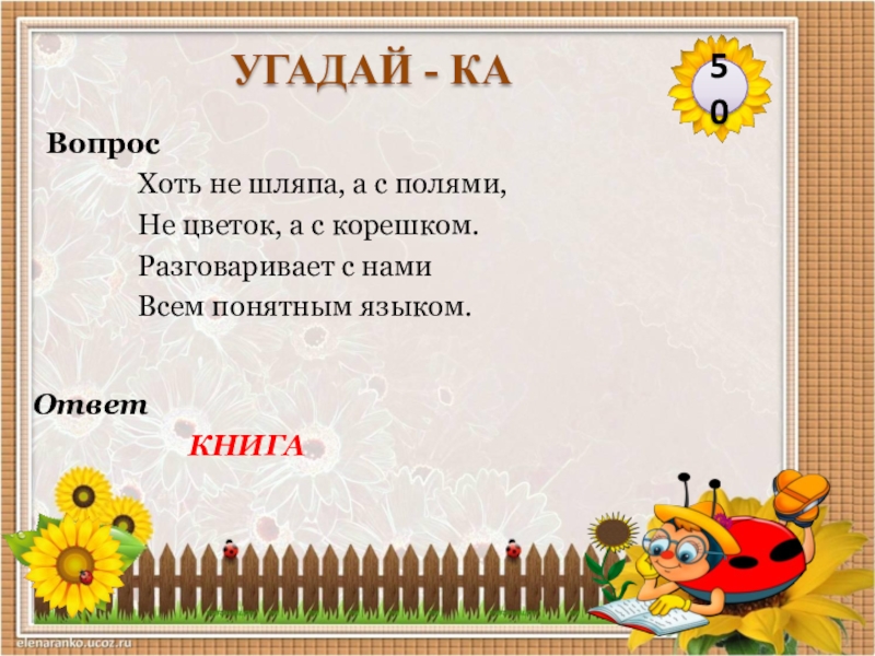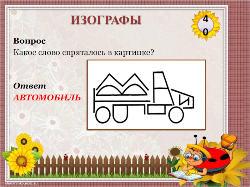 Это сайт презентаций, где можно хранить и обмениваться своими презентациями, докладами, проектами, шаблонами в формате PowerPoint с другими пользователями. Мы помогаем школьникам, студентам, учителям, преподавателям хранить и обмениваться учебными материалами.