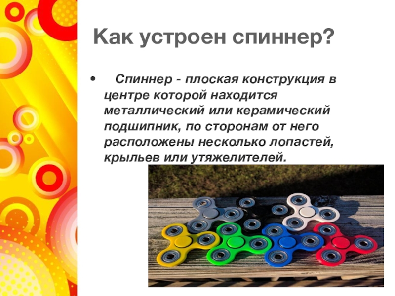 Слайд 3 Спиннер- « вертушка для непоседы»