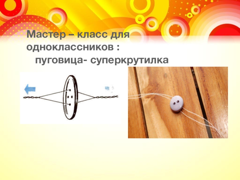 Слайд 15Мастер – класс для одноклассников : пуговица- суперкрутилка