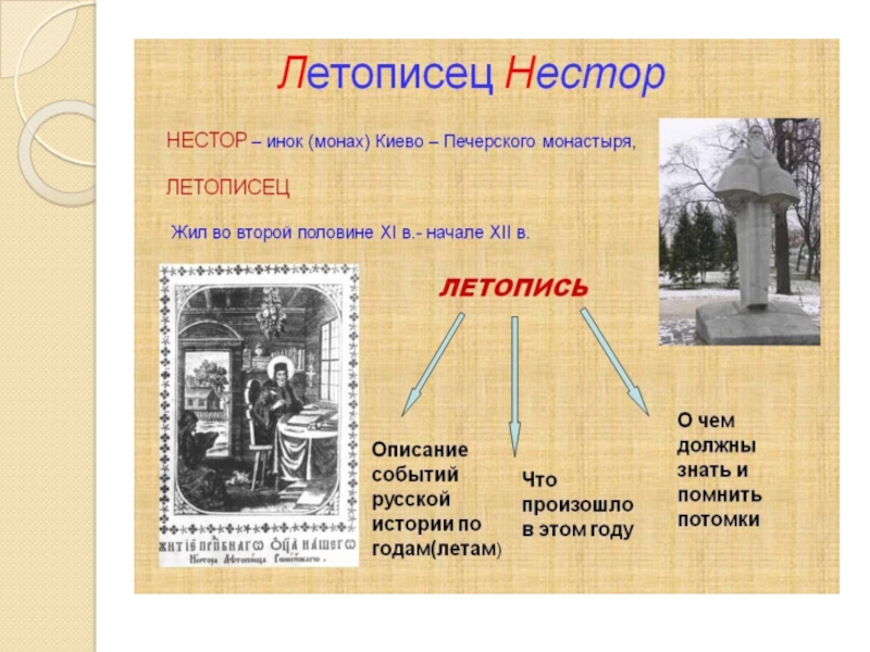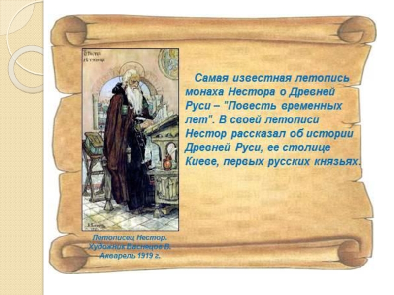 Презентация по внеурочной деятельности (Клуб юных историков) Летописец Нестор Детские презентации