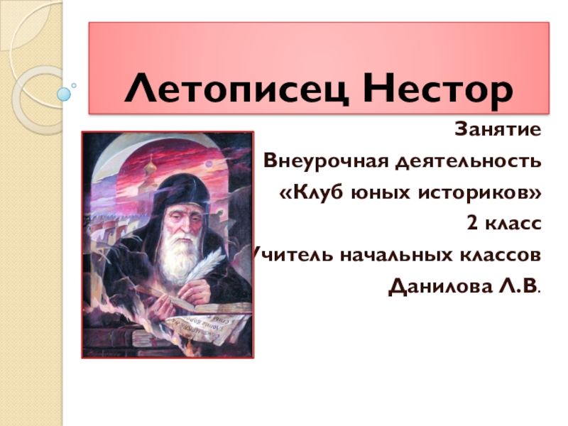 Летописец НесторЗанятие Внеурочная деятельность«Клуб юных историков»2 классУчитель начальных классовДанилова Л.В.