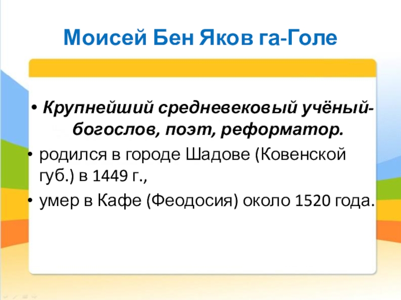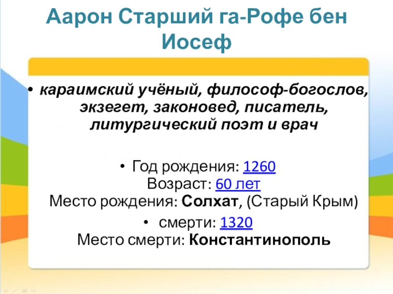 Слайд 29Аарон Старший га-Рофе бен Иосеф, Моисей Бен Яков га-Голе, Габриэль Айвазовский,