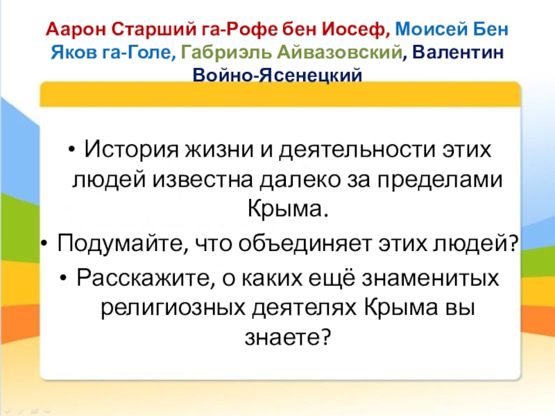 Расскажите, о каких ещё знаменитых религиозных деятелях Крыма вы знаете?