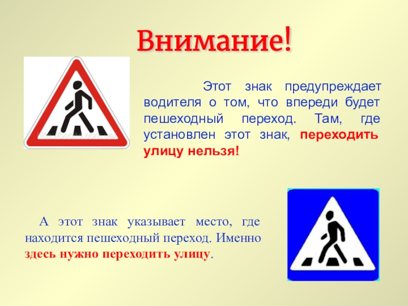А этот знак указывает место, где находится пешеходный переход. Именно здесь нужно переходить улицу.
