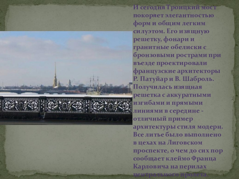 И сегодня Троицкий мост покоряет элегантностью форм и общим