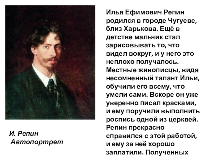 Илья Ефимович Репин родился в городе Чугуеве, близ Харькова.
