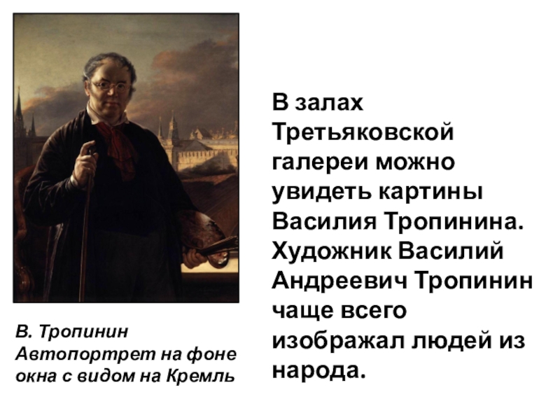 Слайд 22В. Тропинин Автопортрет на фоне окна с видом на Кремль