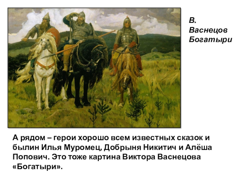 Илья Муромец, Добрыня Никитич и Алёша Попович. Это тоже картина Виктора Васнецова «Богатыри».