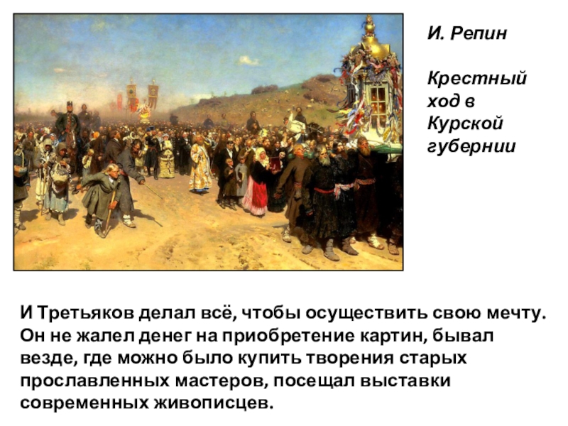 Третьякова, скупающего за хорошие деньги все самые лучшие полотна живописцев, опережая самого царя, который не мог предложить такую высокую цену.