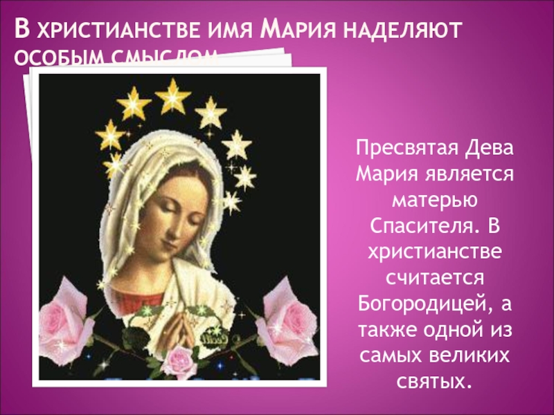 В ХРИСТИАНСТВЕ ИМЯ МАРИЯ НАДЕЛЯЮТ ОСОБЫМ СМЫСЛОМ