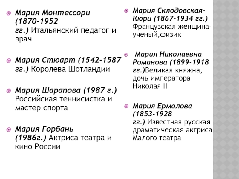 Мария Шарапова (1987 г.) Российская теннисистка и мастер спорта