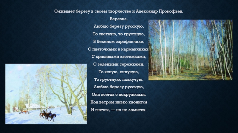 Слайд 11Оживляет березу в своем творчестве и Александр Прокофьев.