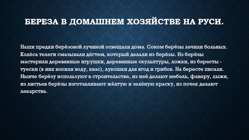 Слайд 6Береза в домашнем хозяйстве на Руси.