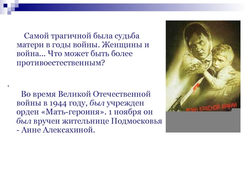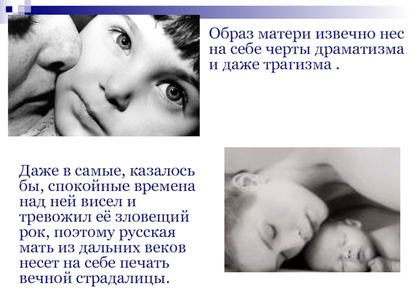 Образ матери извечно нес на себе черты драматизма и даже трагизма .