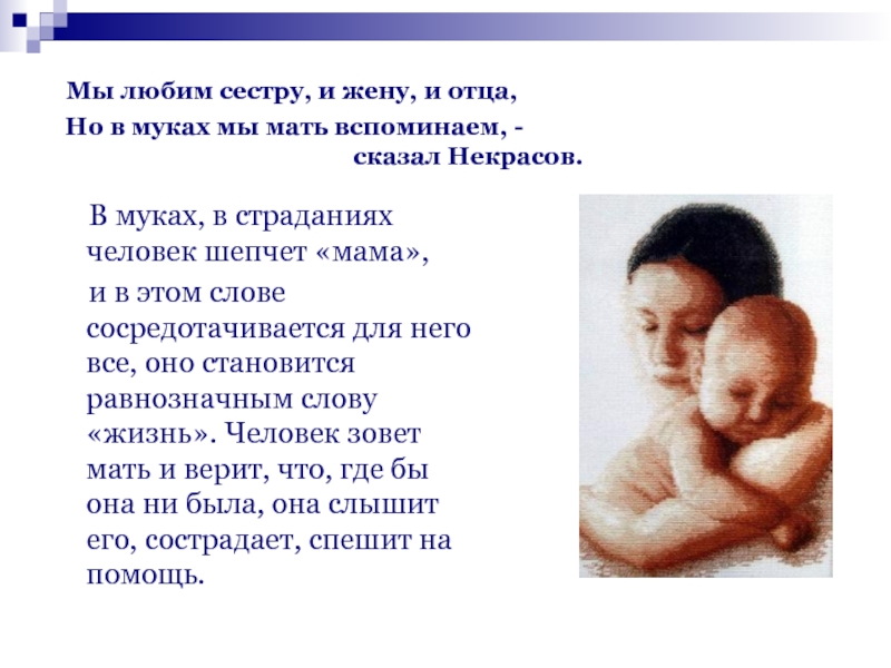 В муках, в страданиях человек шепчет «мама»,