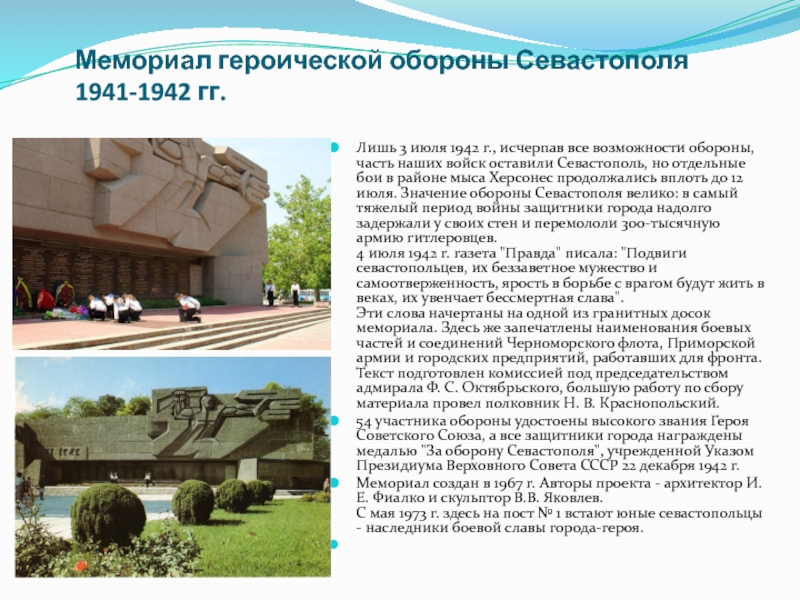 Слайд 12Мемориал героической обороны Севастополя 1941-1942 гг.
