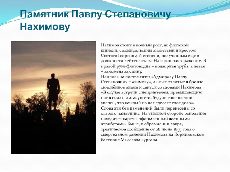 Слайд 7Памятник Павлу Степановичу Нахимову