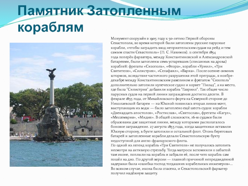 на тему: «Памятники Севастополя»