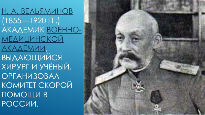 Слайд 17Н. А. Вельяминов (1855—1920 гг.)