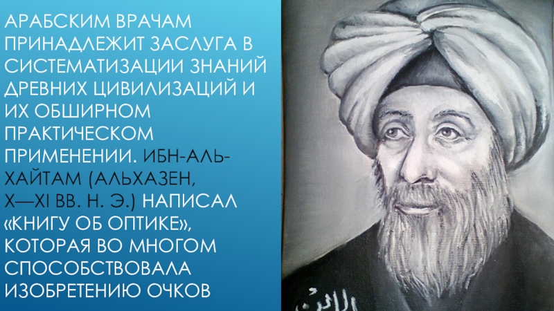 обширном практическом применении. Ибн-Аль-Хайтам (Альхазен, X—XI вв. н. э.) написал «Книгу об оптике», которая во многом способствовала изобретению очков