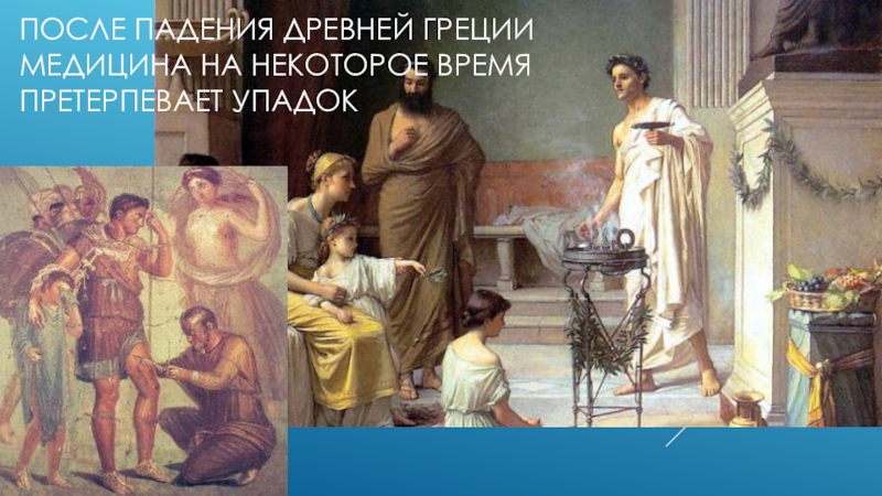 Слайд 5После падения Древней Греции медицина на некоторое время претерпевает упадок