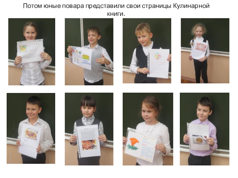 Слайд 17Потом юные повара представили свои страницы Кулинарной книги.