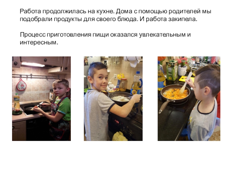 Слайд 15Работа продолжилась на кухне. Дома с помощью родителей мы подобрали продукты