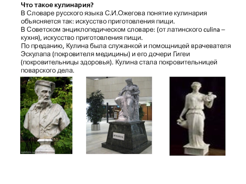 В Советском энциклопедическом словаре: (от латинского culina – кухня), искусство приготовления пищи.