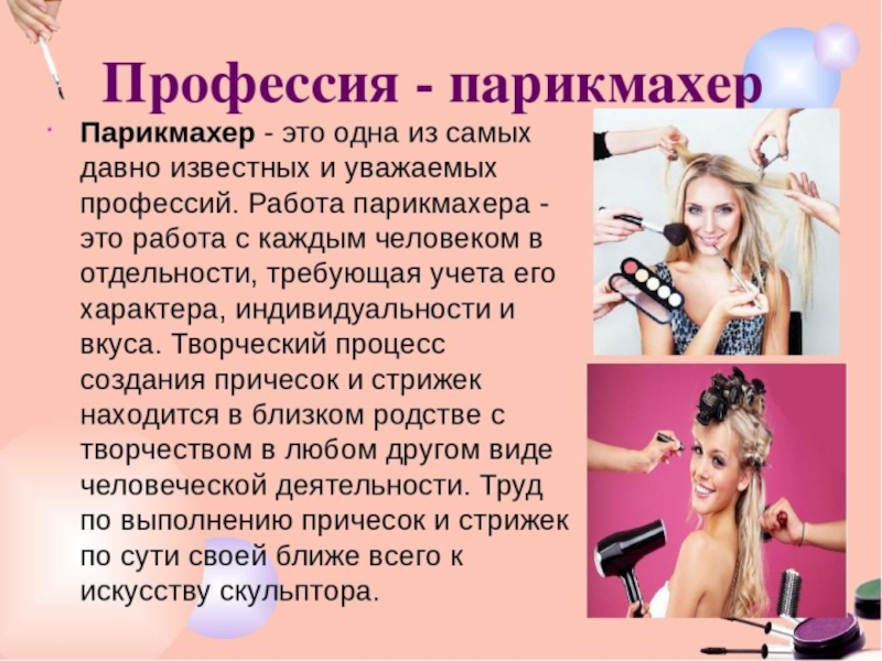 Презентация по внеурочной деятельности на тему : Профессия парикмахер. Детские презентации