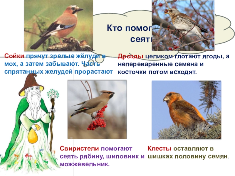 Дрозды целиком глотают ягоды, а непереваренные семена и косточки потом всходят.