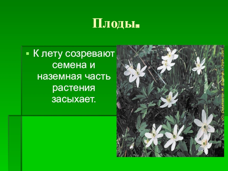 Плоды.К лету созревают семена и наземная часть растения засыхает.