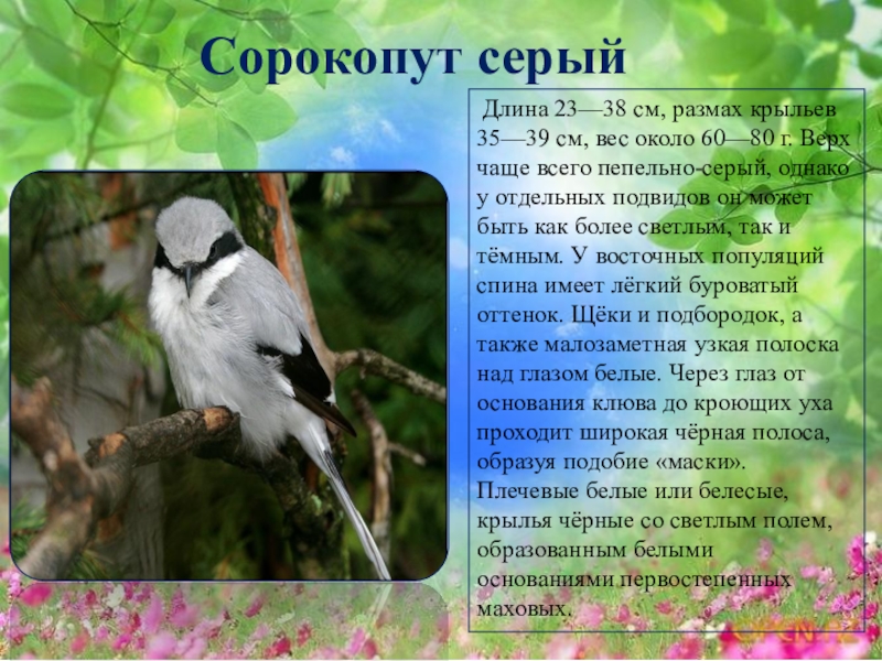 Слайд 35Сорокопут серый