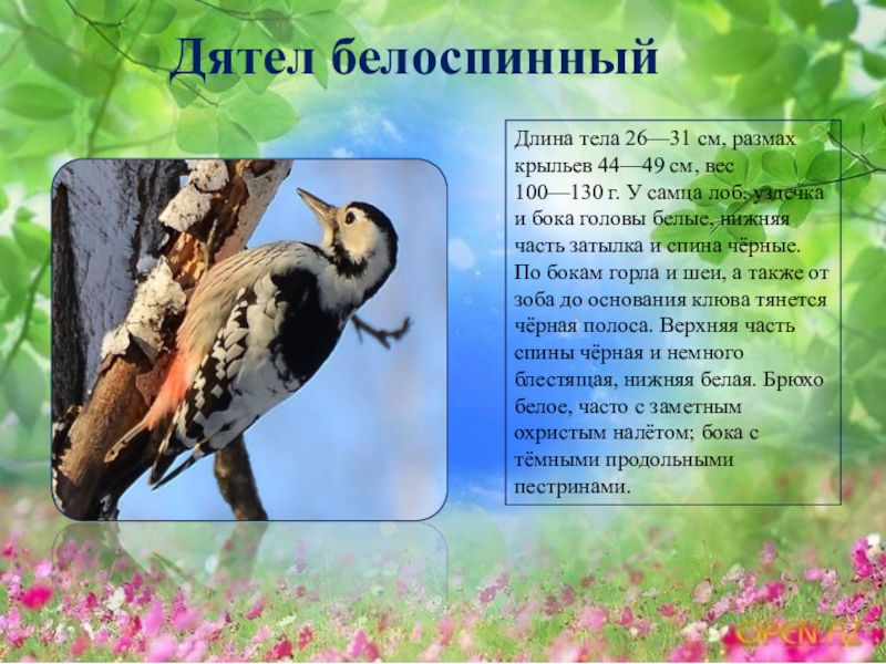 Слайд 15Дятел белоспинный
