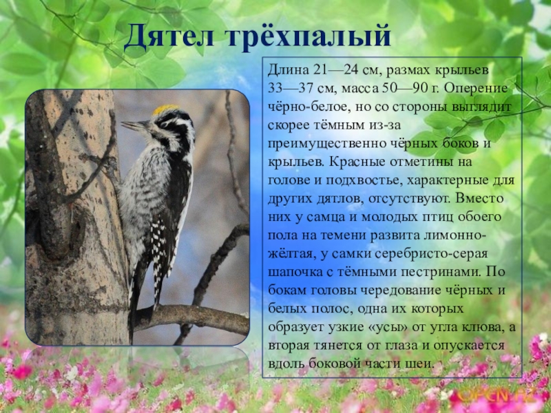 Слайд 18Дятел трёхпалый
