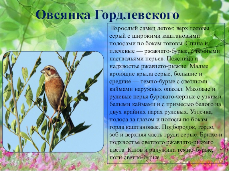 Слайд 46Овсянка Гордлевского