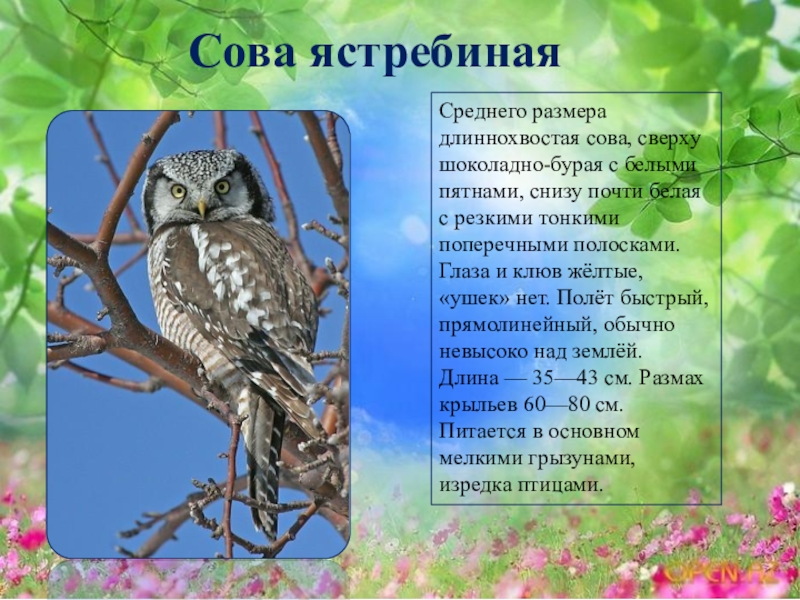 Слайд 43Сова ястребиная