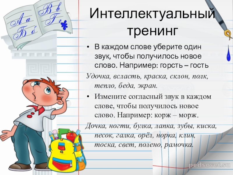 Волк – полк – пола – поза – коза.