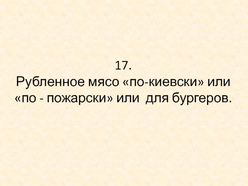 Слайд 3617. Рубленное мясо «по-киевски» или «по - пожарски» или для бургеров.