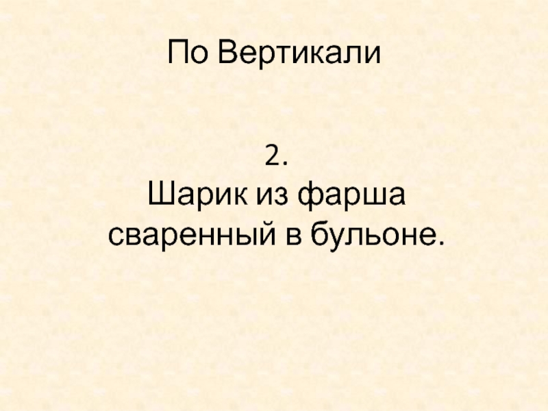 По Вертикали2.Шарик из фарша сваренный в бульоне.