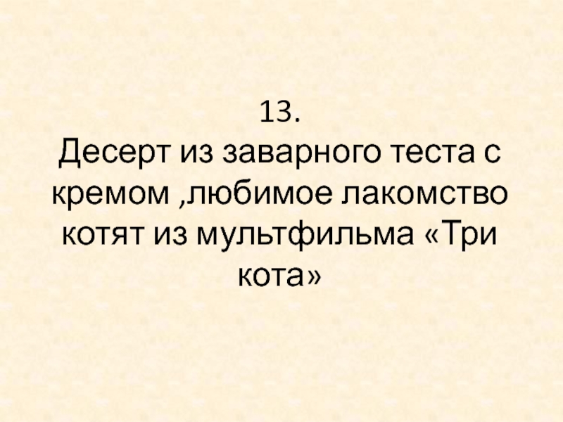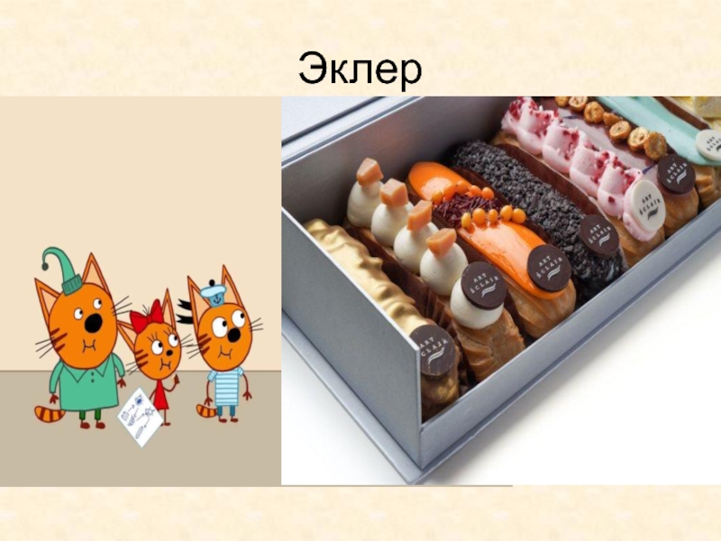 Слайд 3013. Десерт из заварного теста с кремом ,любимое лакомство котят из мультфильма