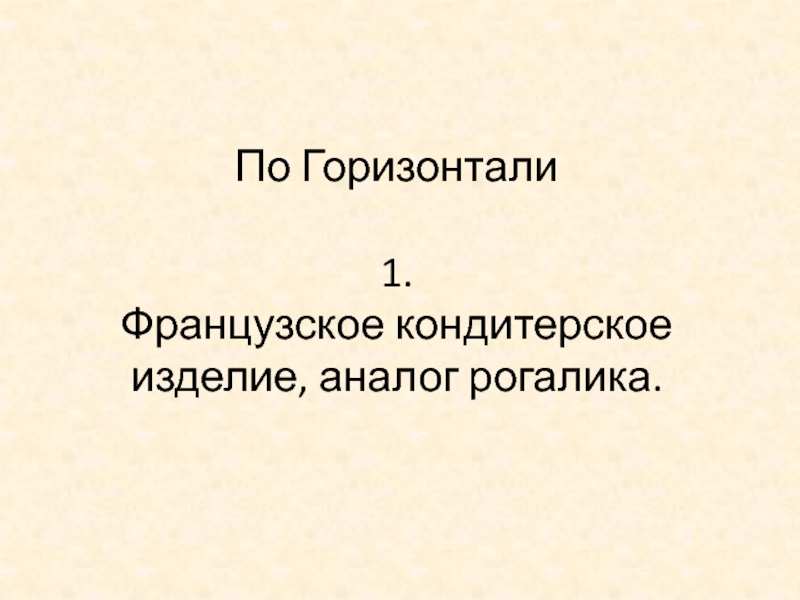 Слайд 2По Горизонтали 1. Французское кондитерское изделие, аналог рогалика.
